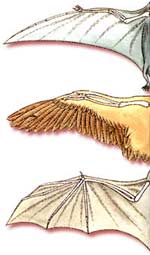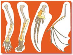 ![]() Uçan sürünən, quş və yarasa qanadları. Arada heç bir təkamülçü əlaqə qurula bilməyən bu qanadlar oxşar quruluşa sahibdirlər. |