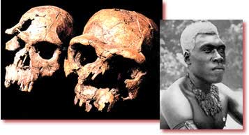 Ancaq bu kəllə sümükləri artıq dərəcədə Homo erectus xüsusuyyətlərini göstərir. Homo sapiens olaraq tanıdılmalarının yeganə səbəbi isə 10 min il hesablanan yaşları idi. Təkamülçülər dövrümüzdəki insandan 500 min il əvvəl yaşamış ibtidai növ olaraq bildirdikləri Homo erectusların bundan 10 il əvvəl yaşamış insan irqi olduğu gerçəyini qəbul etmək istəməmişdilər. |