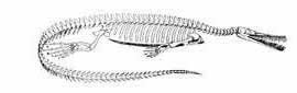 Hilonomusdan təkamülləşdiyi iddia edilən dəniz sürünəni Mesosaurus |