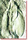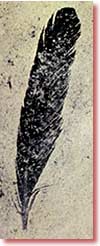 ![]() Archeopteryxin uçan bir quş olduğunun mühüm sübutlarından biri, asimmetrik tük quruluşudur. Yuxarıda bu canlıya aid tük fosili var. |