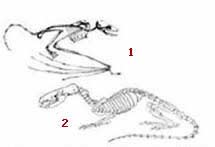 1- Eocen dövrünə aid ən qədim yarasanın (İcaronycteris) skeleti 2- Yarasaların atasıı olduğu iddia edilən və qədim həşərat yiyənlərə cox bənzəyən dövrümüzə aid Shrew Bilinən ən qədim yarasa və təkamülçülərə görə yarasaların ən yaxın atası. Yarasa ilə guya atası arasındaki böyük fərqə diqqət edin. |