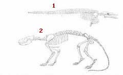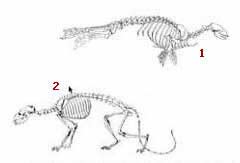 1-Miocene dövrünə aid ən qədim suitinin 2-Təkamülçülər tərəfindən suitinin quruda yaşayan ən yaxın əcdadları olaraq qəbul etdikləri məməli Cynodictis gregarius Tipik bir fok balığı iskeleti ve evrimcilere göre fok balıklarının karada yaşayan en yakın atası. Yine canlılar arasında büyük bir fark var. |