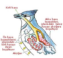 Yəni quşların ağciyər kanalları o qədər dardır ki, bu ağciyərin içindəki hava kisəcikləri digər quruda yaşayan canlıların ciyərləri kimi hava ilə dolub-boşala bilməz. Əgər quş ağciyəri bir dəfə tamamilə boşalsa, quş bir daha ciyərlərinə hava çəkə bilməyəcək və ya bunu etmək üçün çox böyük çətinlik çəkəcəkdir. Ona görə ağciyərin ətrafına yerləşdirilmiş hava kisəcikləri daimi hava axınını təmin edir və ciyərləri havasız qalıb funksiyasını itirməkdən qoruyur.
