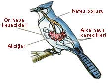 Nəfəs alarkən: Quşun nəfəs borusundan içəri girən təmiz hava, həm ağciyərə həm də ağciyərin arxasında yerləşən arxa hava kisəçiklərinə dolur. Ağciyərdə olan kirlənmiş hava isə ön hava kisəçiklərinə ötürülür. Nəfəs verərkən: Quş nəfəs verərkən, arxa hava kisəçiklərində toplanan təmiz hava, ağciyərin içinə dolur. Bu sistem sayəsində ciyərlə təmiz hava ötülməsi heç kəsilmədən davam edir.