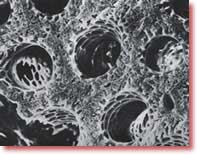 ![]() Quşun ağciyəinin içində olan və havanın tək istiqamətli hərəkət etməsini təmin edən kiçik “parabronx” boruları.Bu boruların hər biri 0,5 mm olçüdədir. |